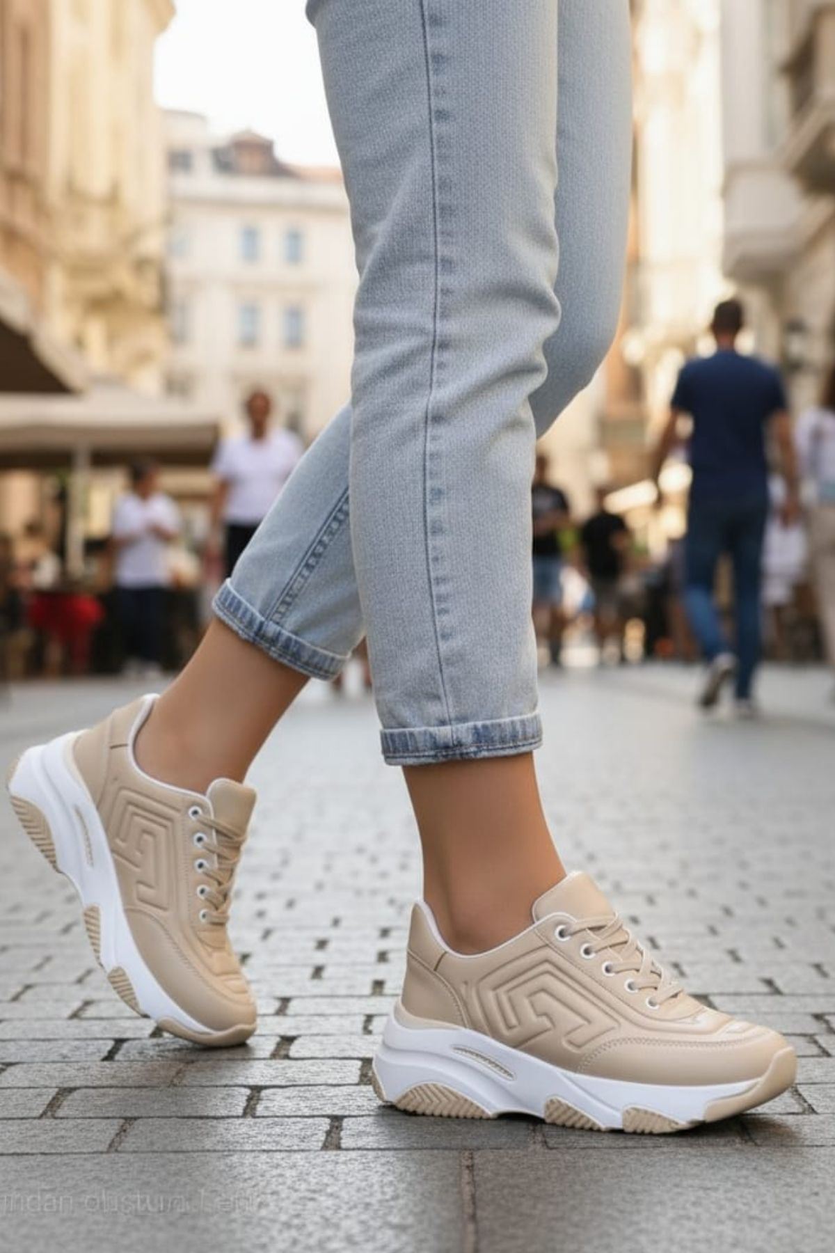 Alete Nude Mat Deri Kadın Spor Ayakkabı