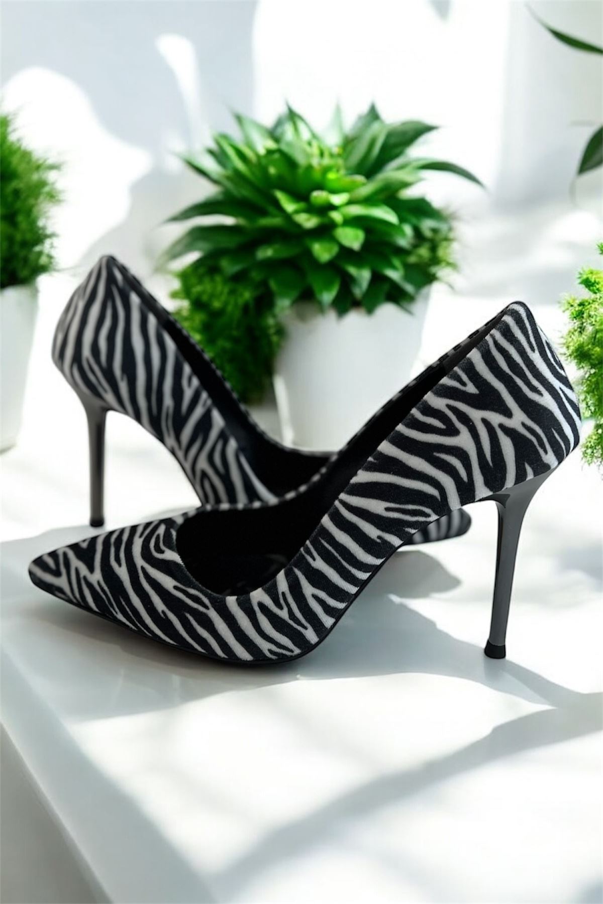 Claral Zebra Desenli İnce Topuklu Kadın Ayakkabı