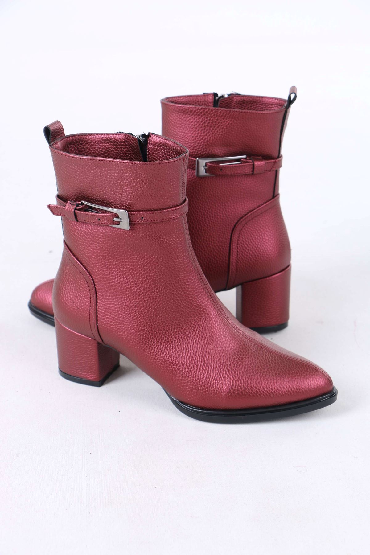 Junious Bordo Mat Deri Tokalı Fermuarlı Kadın Bot