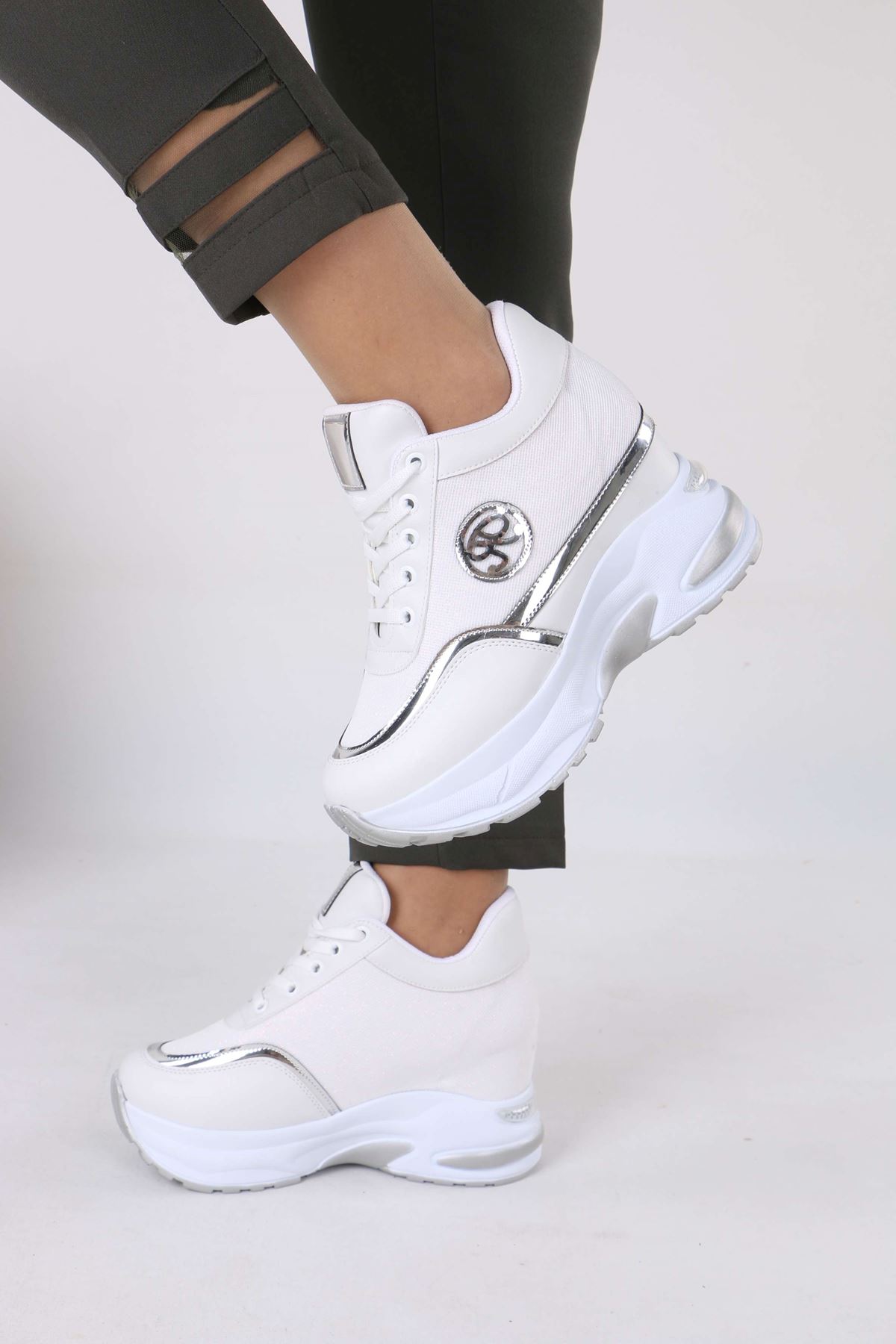 Karlis Beyaz Kürklü Gizli Topuklu Kadın Spor Ayakkabı