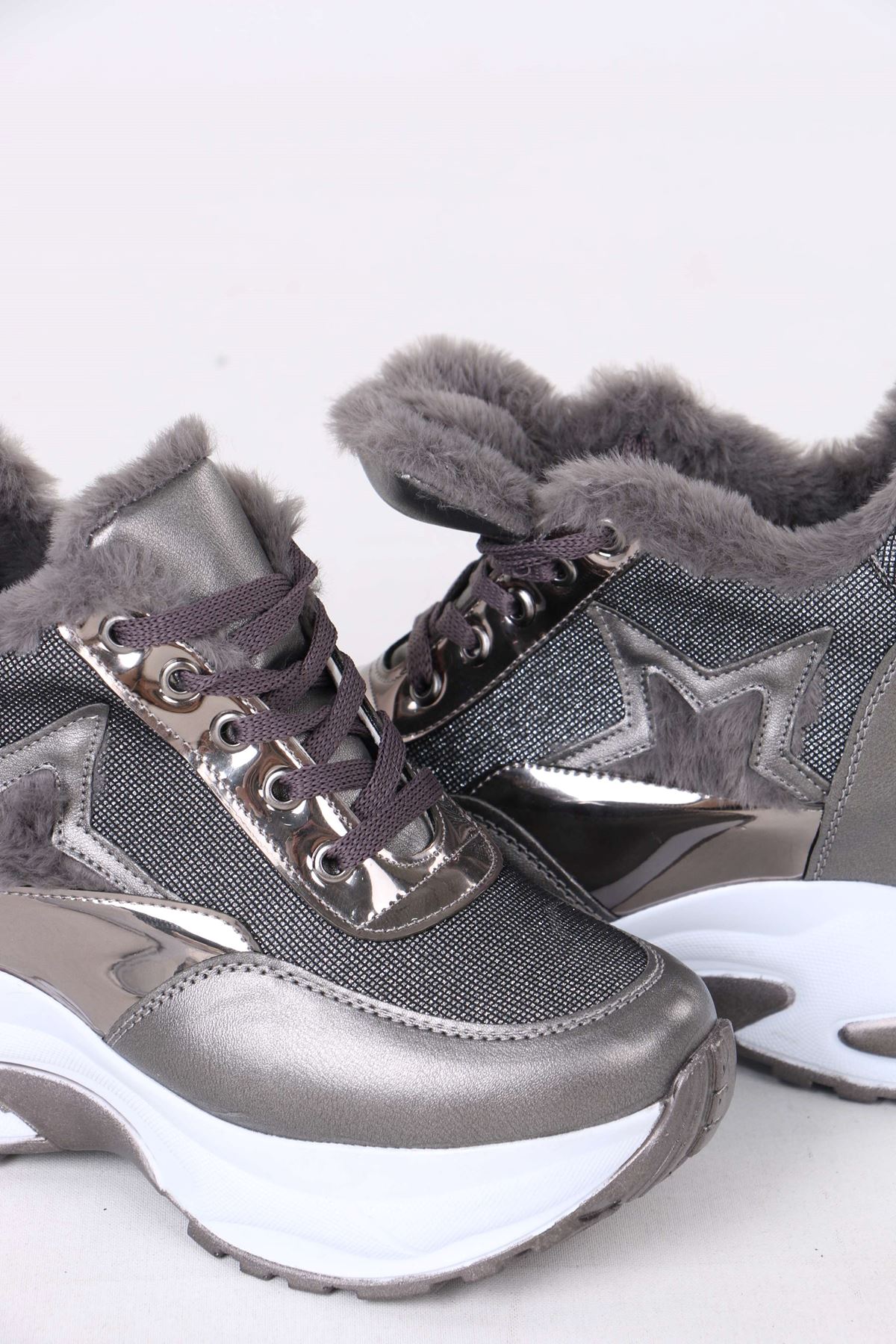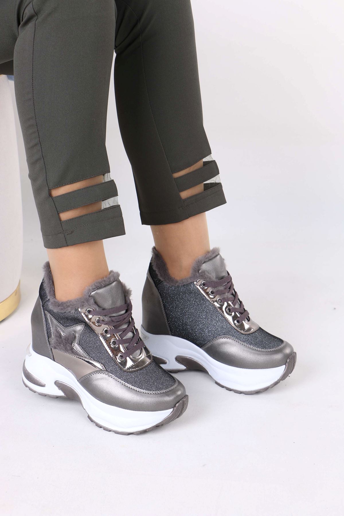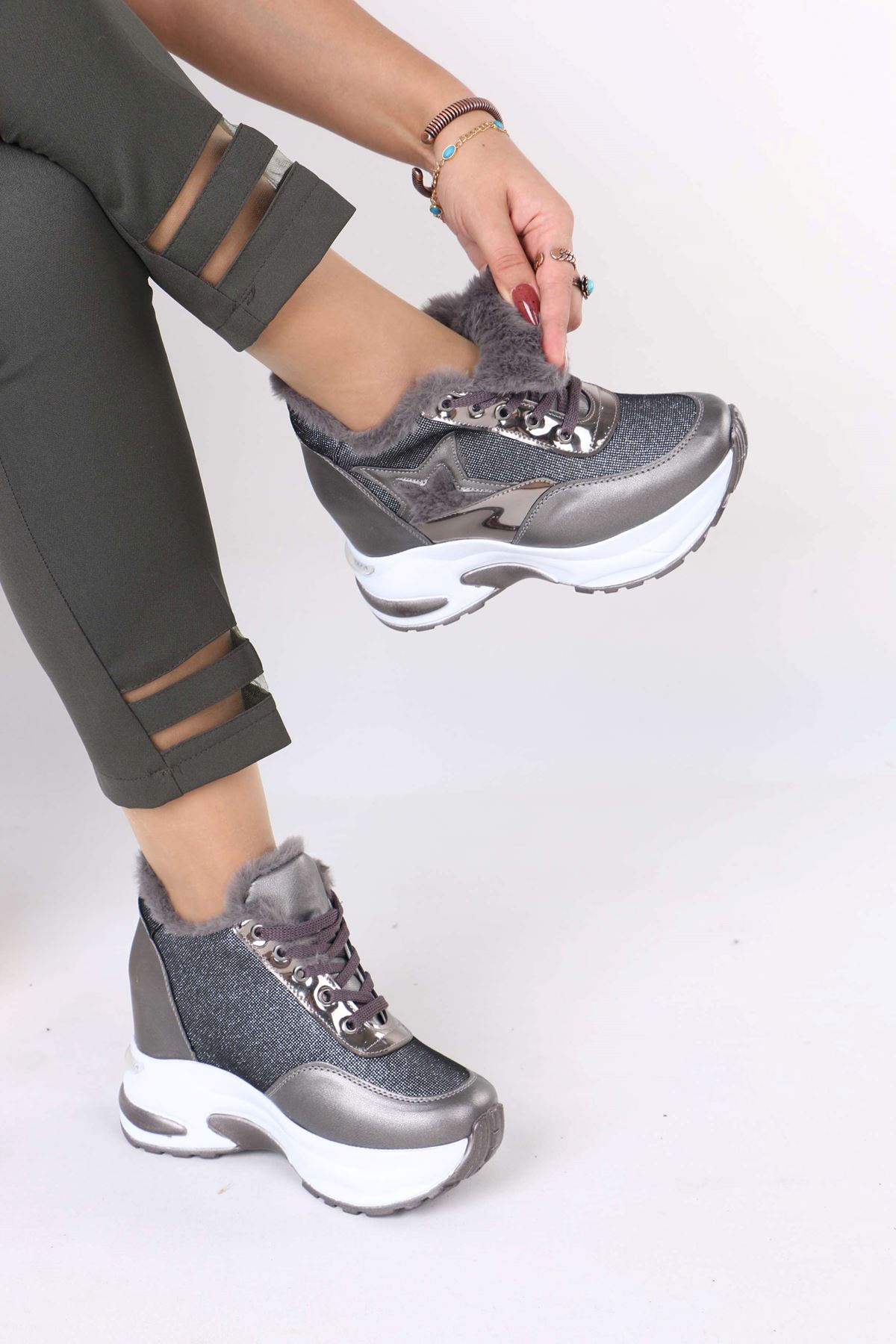 Katle Gri Kürklü Gizli Topuklu Kadın Spor Ayakkabı