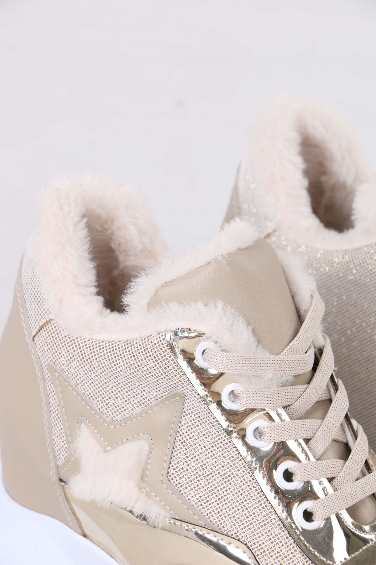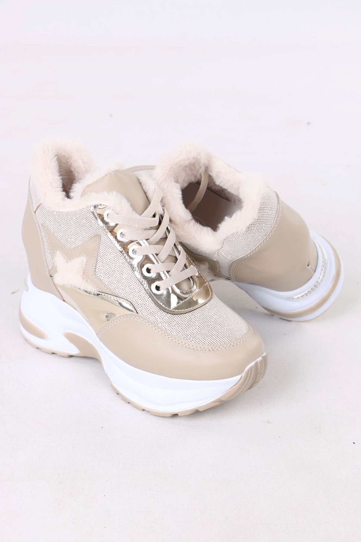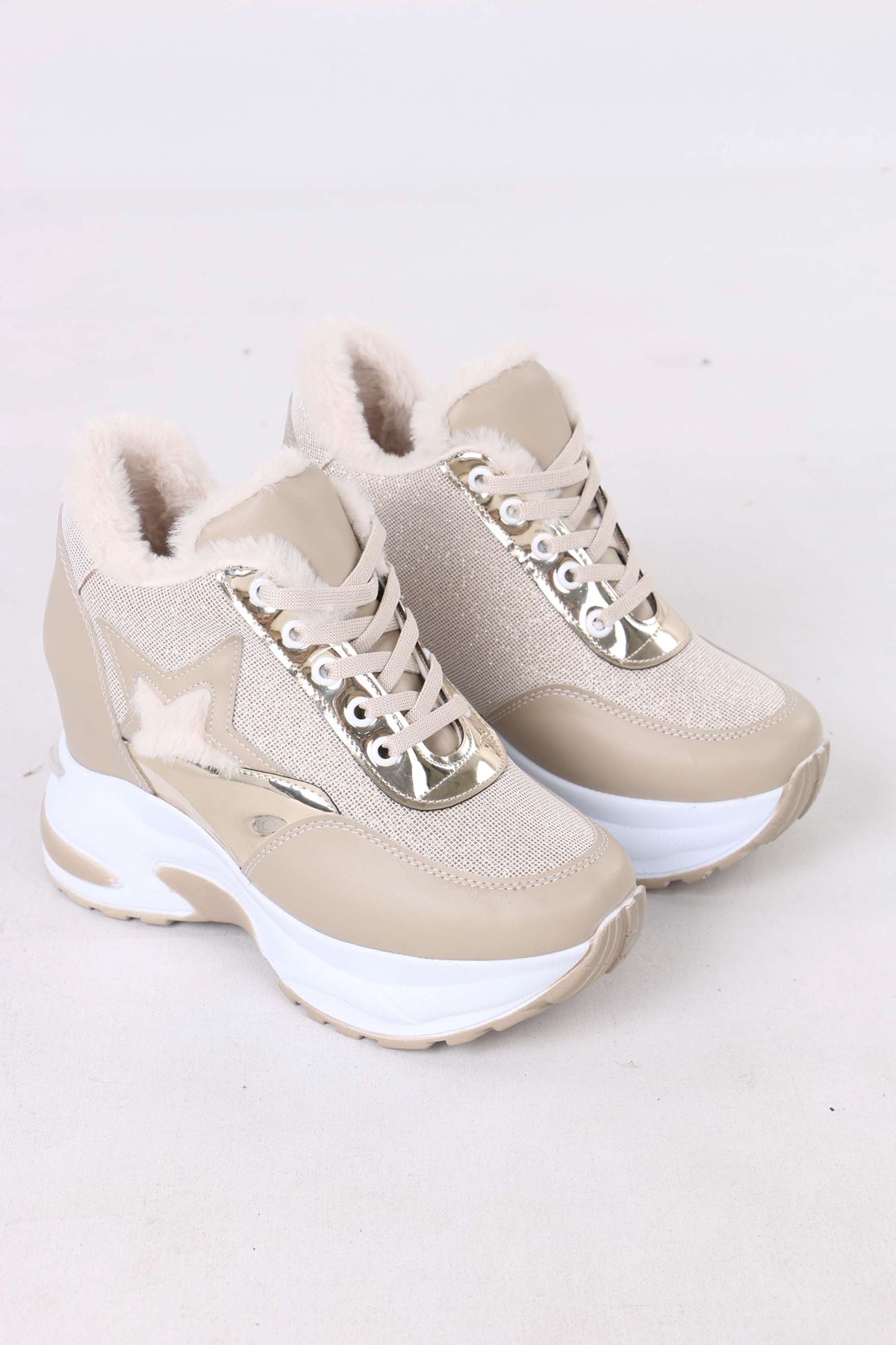 Katle Nude Kürklü Gizli Topuklu Kadın Spor Ayakkabı