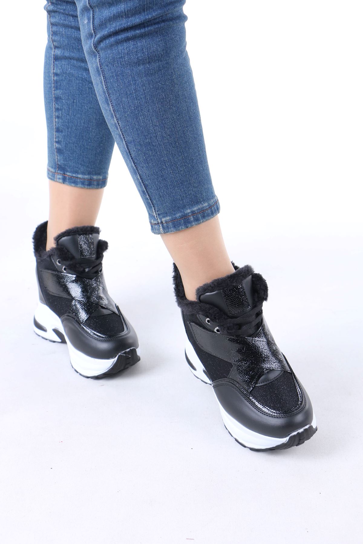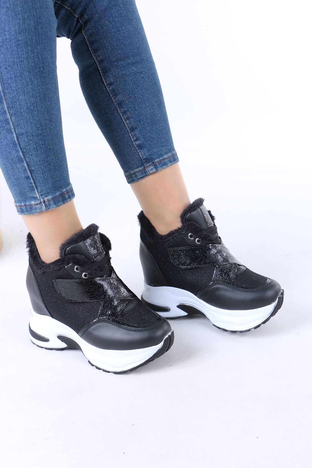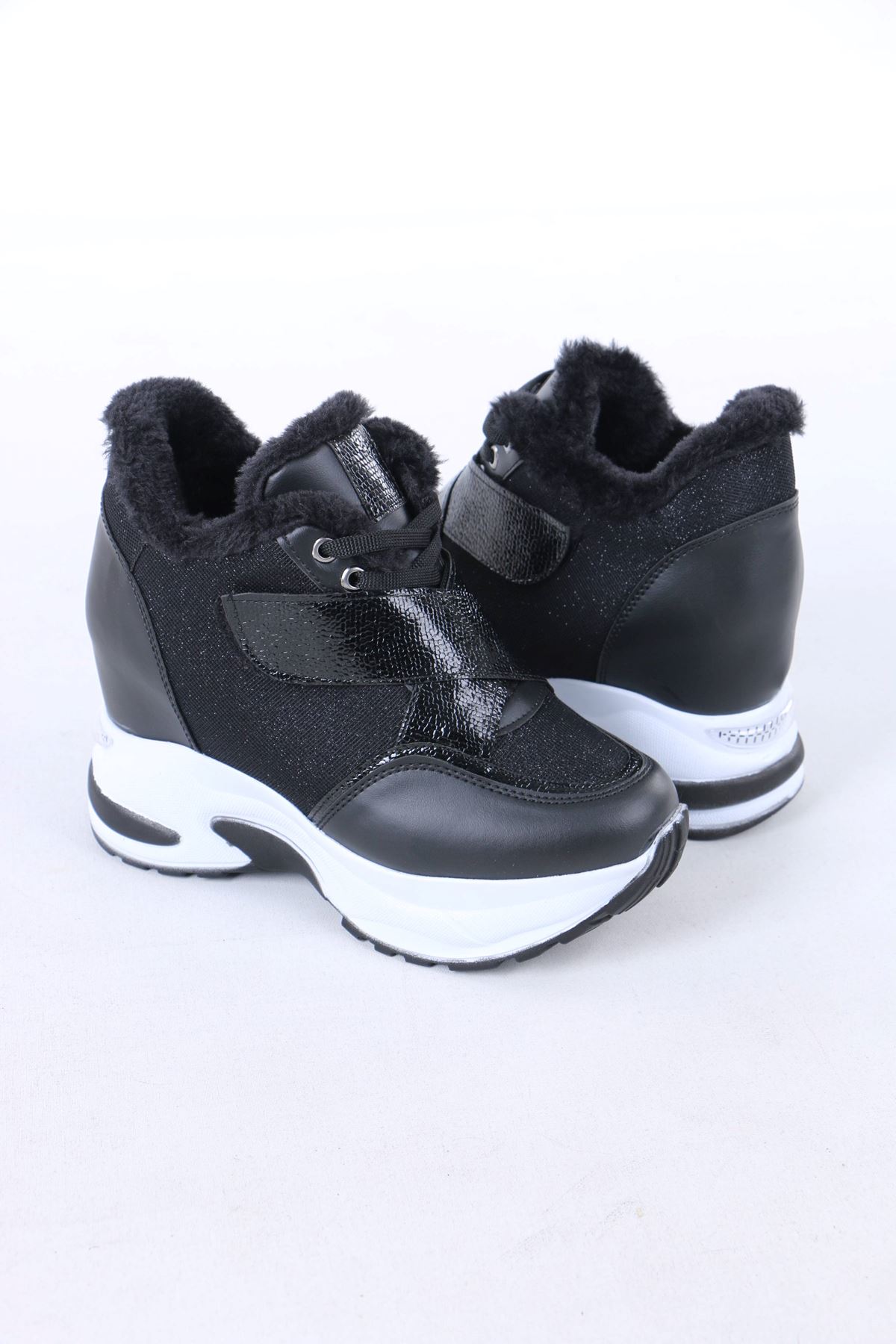 Leroy Siyah Beyaz Taban Cırtlı Bağcıklı Gizli Topuklu Spor Ayakkabı