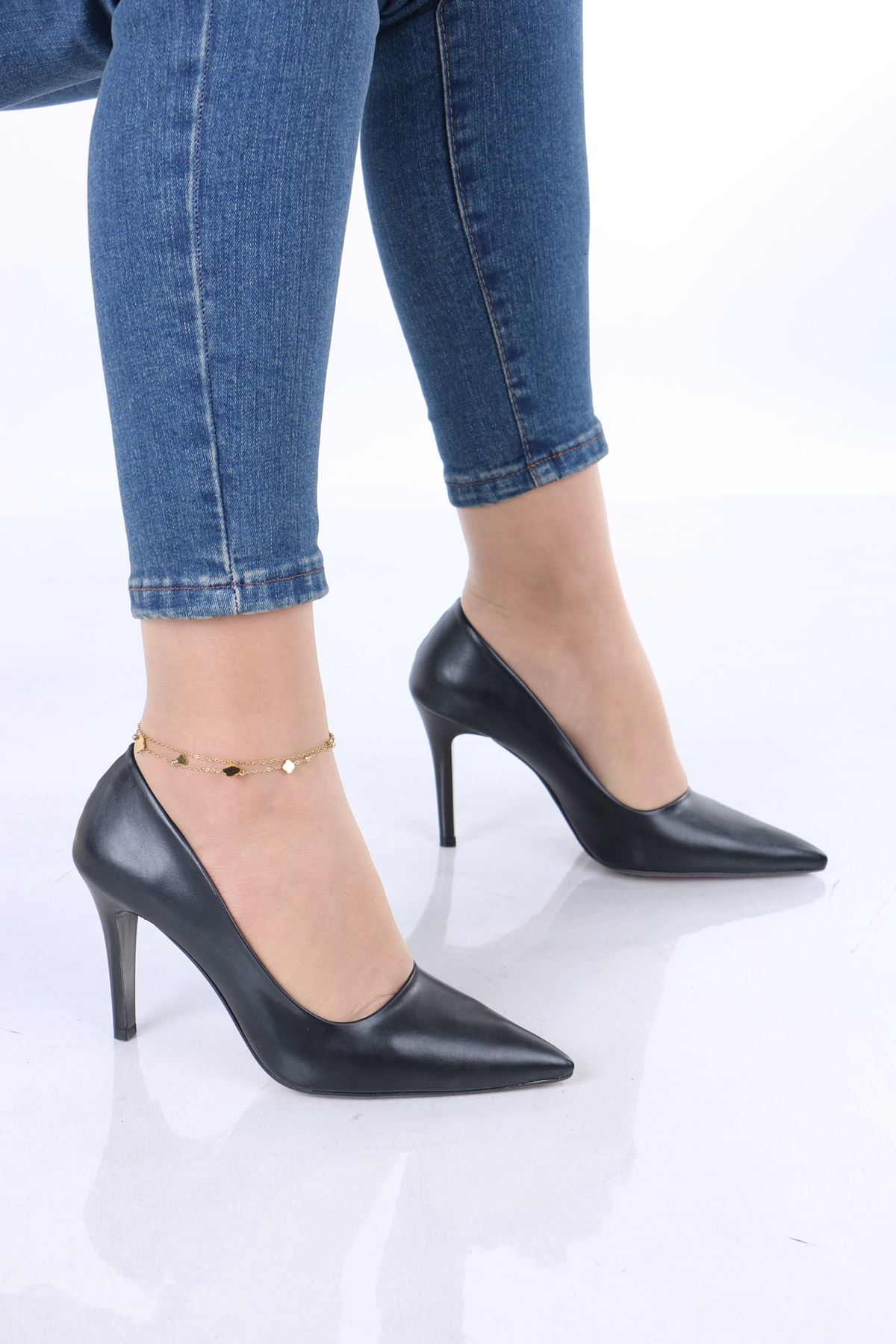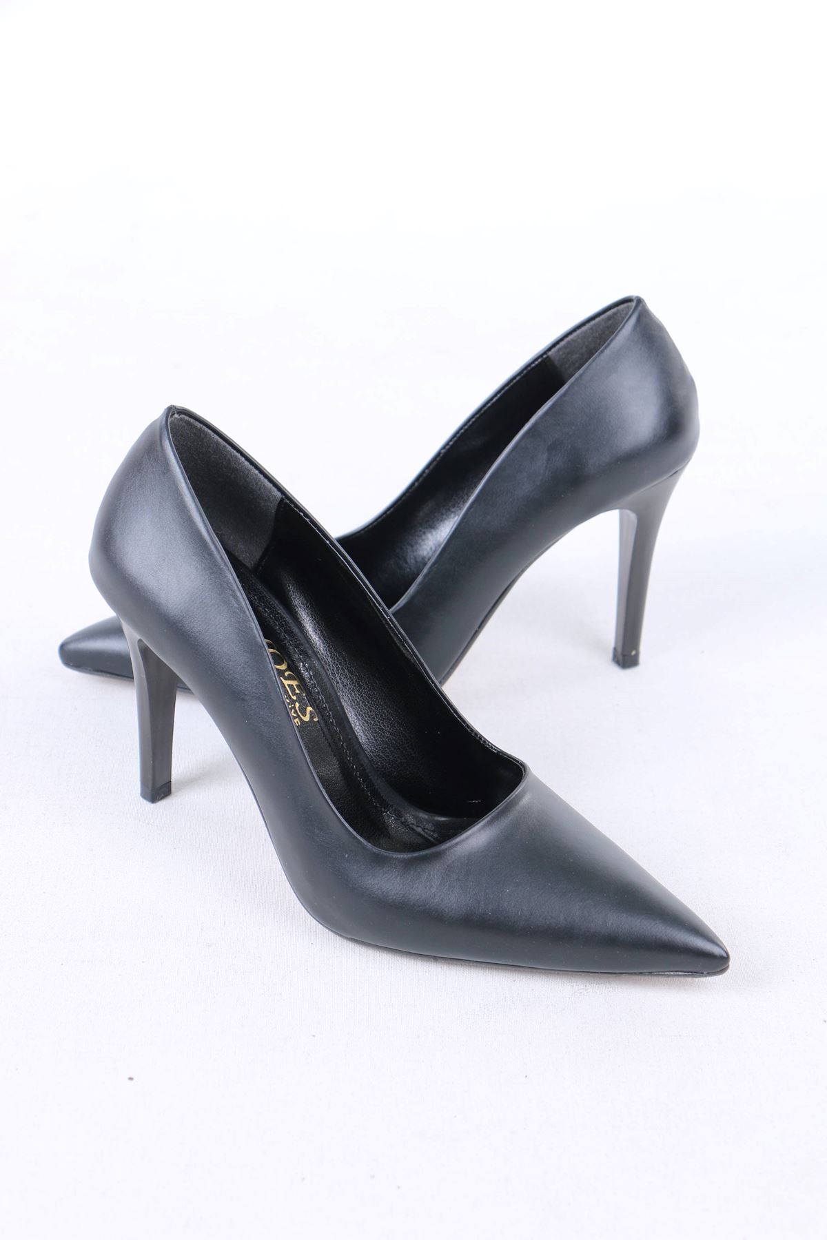 Lisle Siyah Mat Deri İnce Topuklu Kadın Ayakkabı